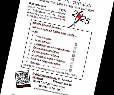 Die Schuldscheine für 0,99 Euro sind bei den einschlägigen Kirchenveranstaltungen und an der Abendkasse erhältlich - denn: Nix es ömesöns!: