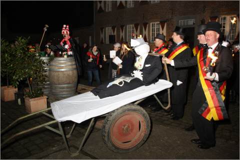 Bei der dritten Nubbelverbrennung war auch diesmal die Trauergemeinde sehr textsicher und ergänzte den brillanten Auftritt von Pfarrer Peter Cryan mit der perfekten Atmosphäre einer echten Trauergemeinde.