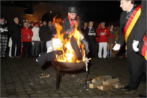 der Nubbelverbrennung am 04. März 2014 im Fronhof in Sinthern bei Familie Meller mit "Zelebrant" Pfarrer Peter Cryan und wieder über 300 Teilnehmern.