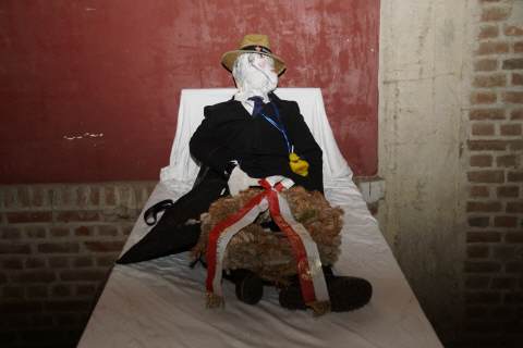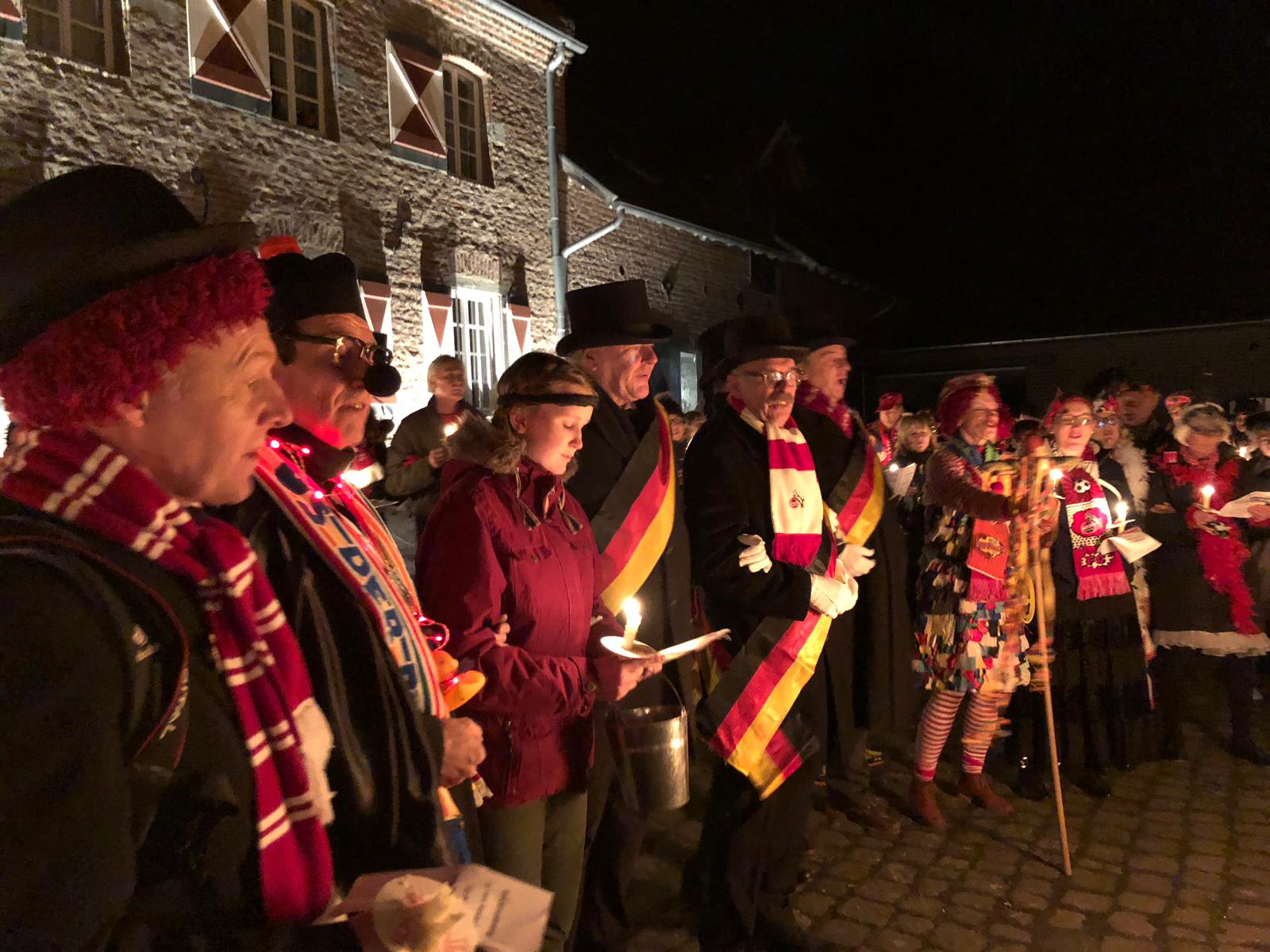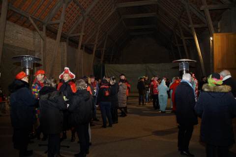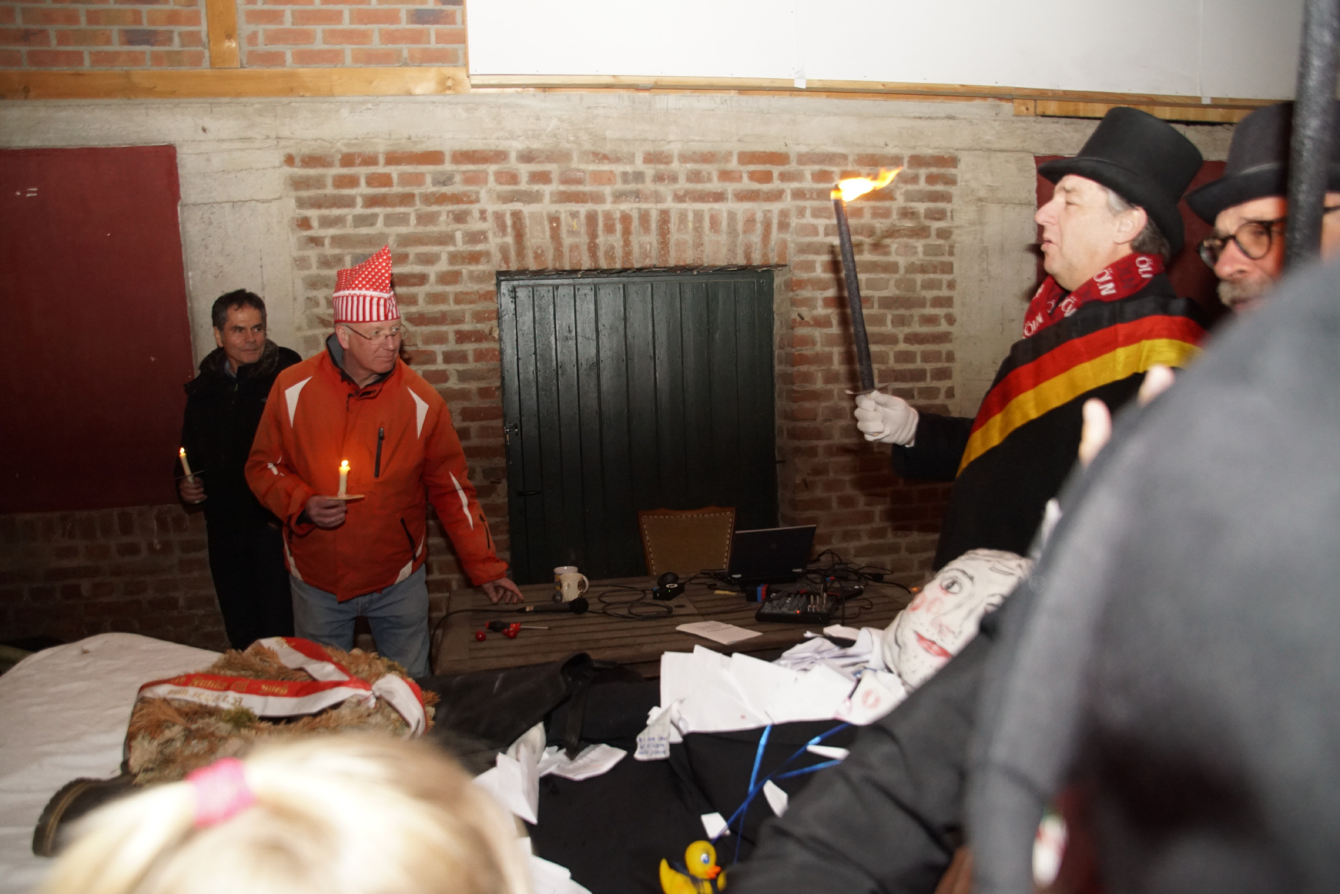 Bei der achten Nubbelverbrennung am 05. März 2019 auf dem Fronhof in Sinthern bei Familie Meller mit dem unvergleichlichen "Zelebranten" Pfarrer Peter Cryan und wieder zahlreichen, auch internationalen Freunden des Sintherner Nubbels, wie Dave aus Amerika.