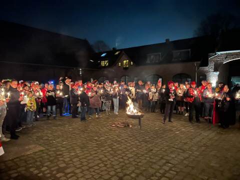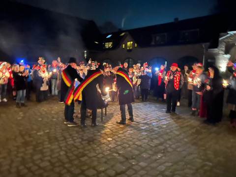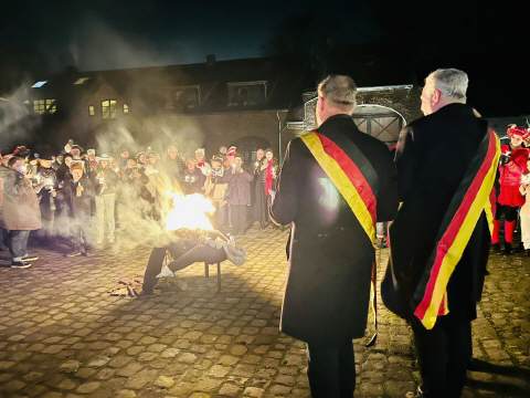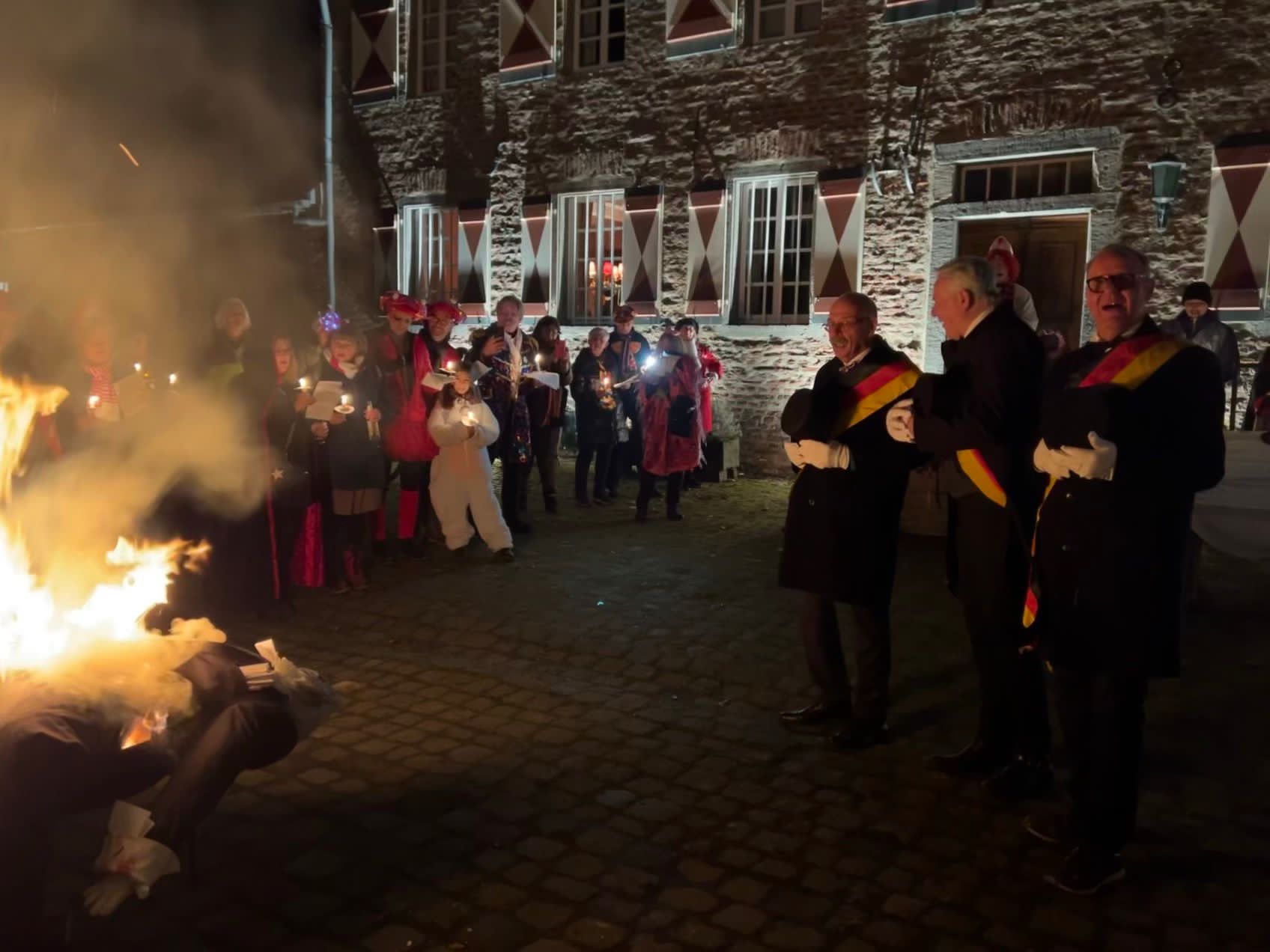 Bei der zehnten Nubbelverbrennung am 13. Februar 2023 auf dem Fronhof in Sinthern bei Familie Meller und wieder sehr zahlreichen Freunden des Sintherner Nubbels.