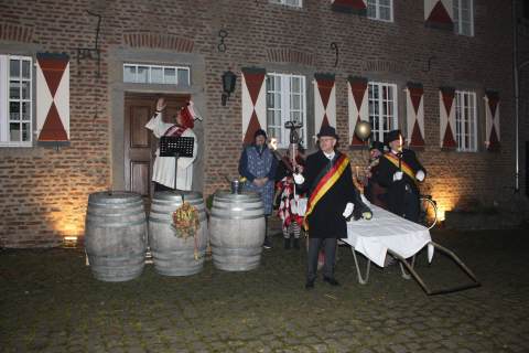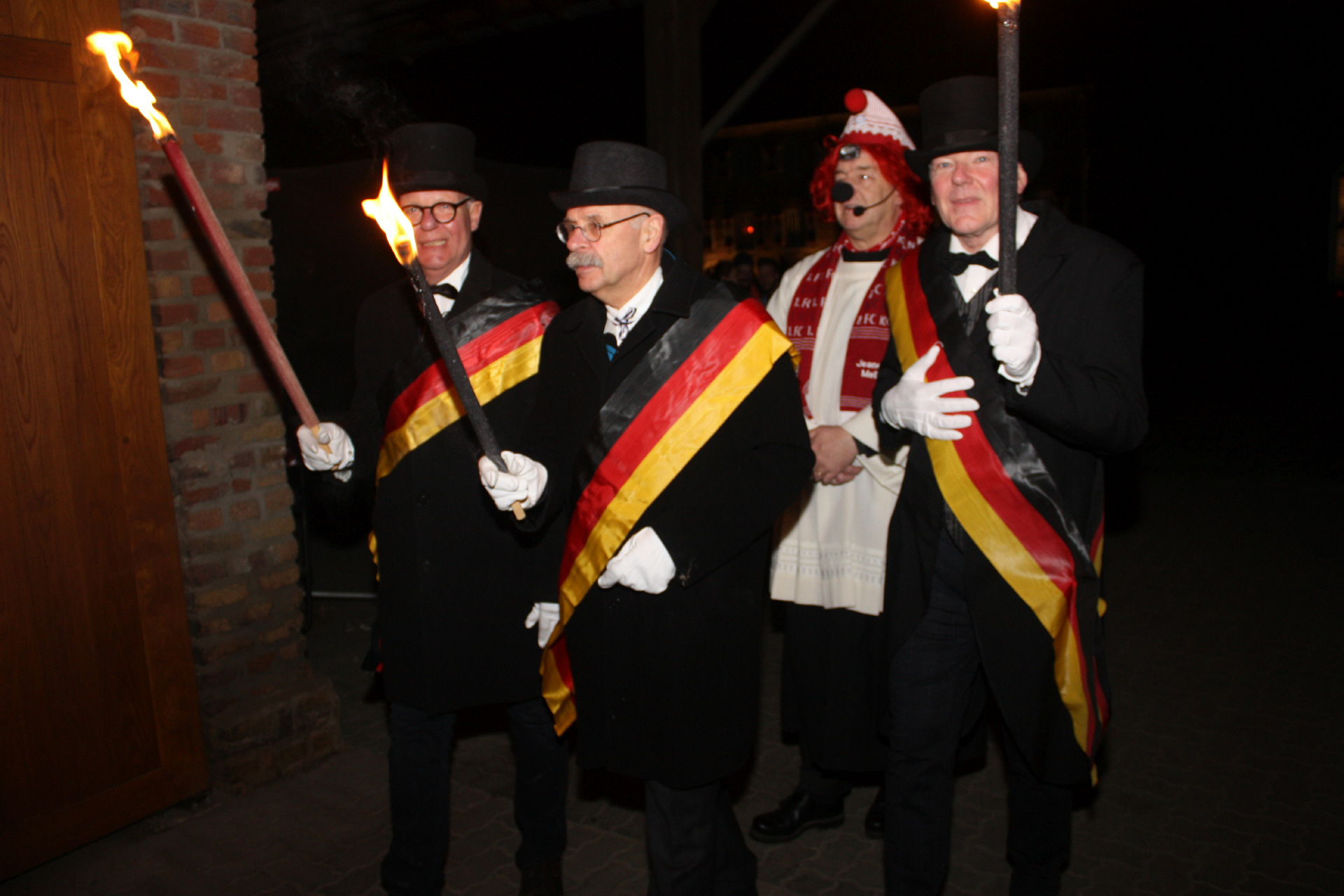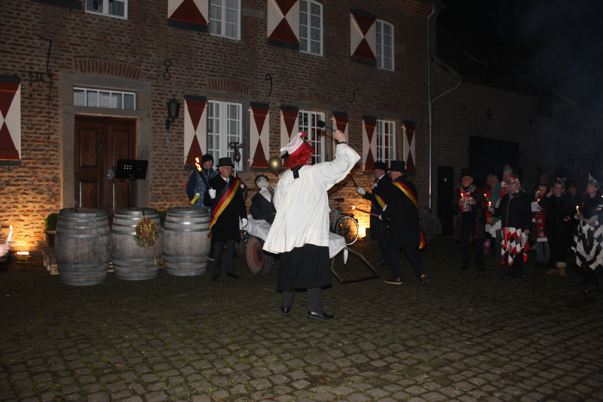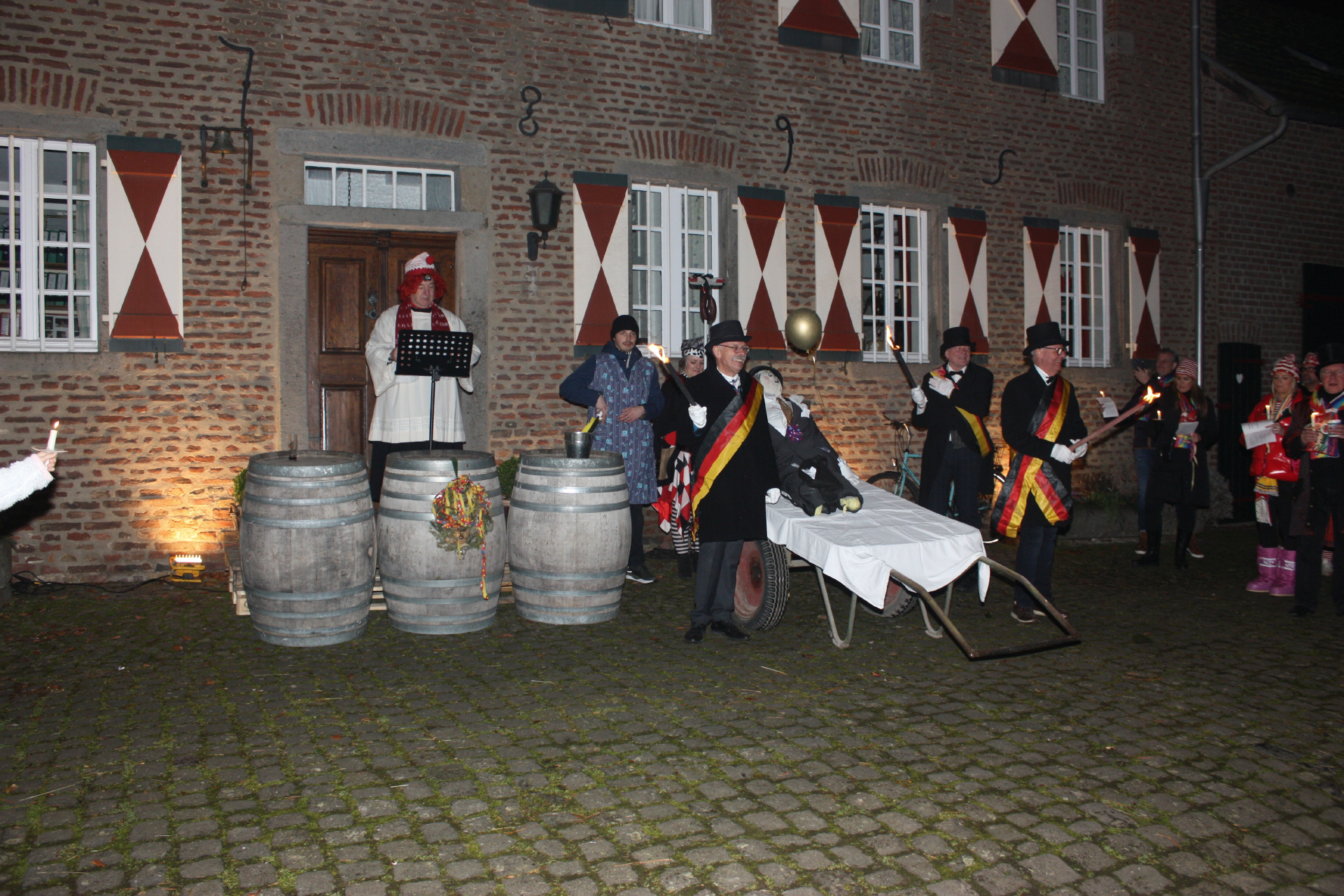 So feierte er mit dieser gelungenen Nubbelverbrennung gleichzeitig seine "Primiz" in Fortführung einer mittlerweile langjährigen Tradition. Unterstützt wurde er durch unseren "Moderator" Alfried Schmitz (Freddie), der die ganzen Umstände zur Neuernennung des Zelebrannten Franz Meller der überraschten Trauergemeinde in unverfälschter "Muttersproch" erläuterte.